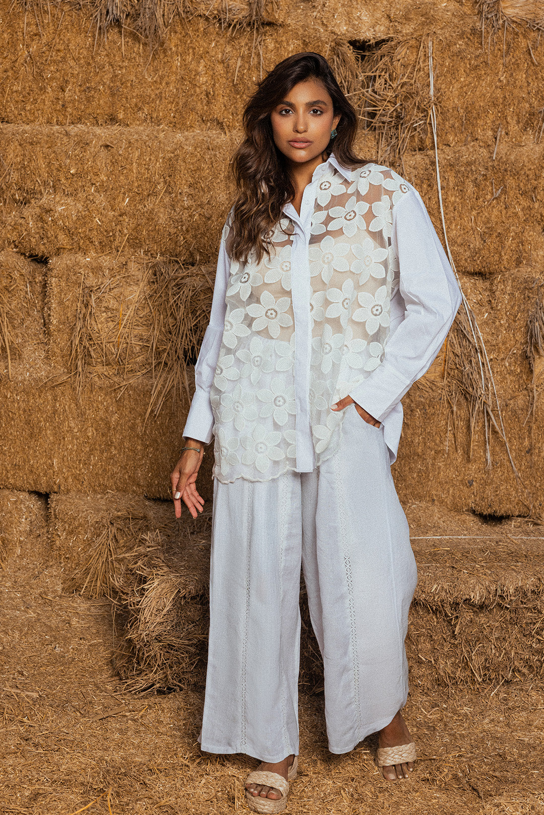 Experience unparalleled style and comfort with our High Quality Bobllin Cotton and embroidered organza Fabric Shirt. Crafted to perfection, this premium shirt offers the perfect blend of luxury and durability, making it an essential addition to any wardrobe. Elevate your look with the best Bobllin cotton and exquisite embroidered organza fabric, designed for women who values both sophistication and everyday wearability.