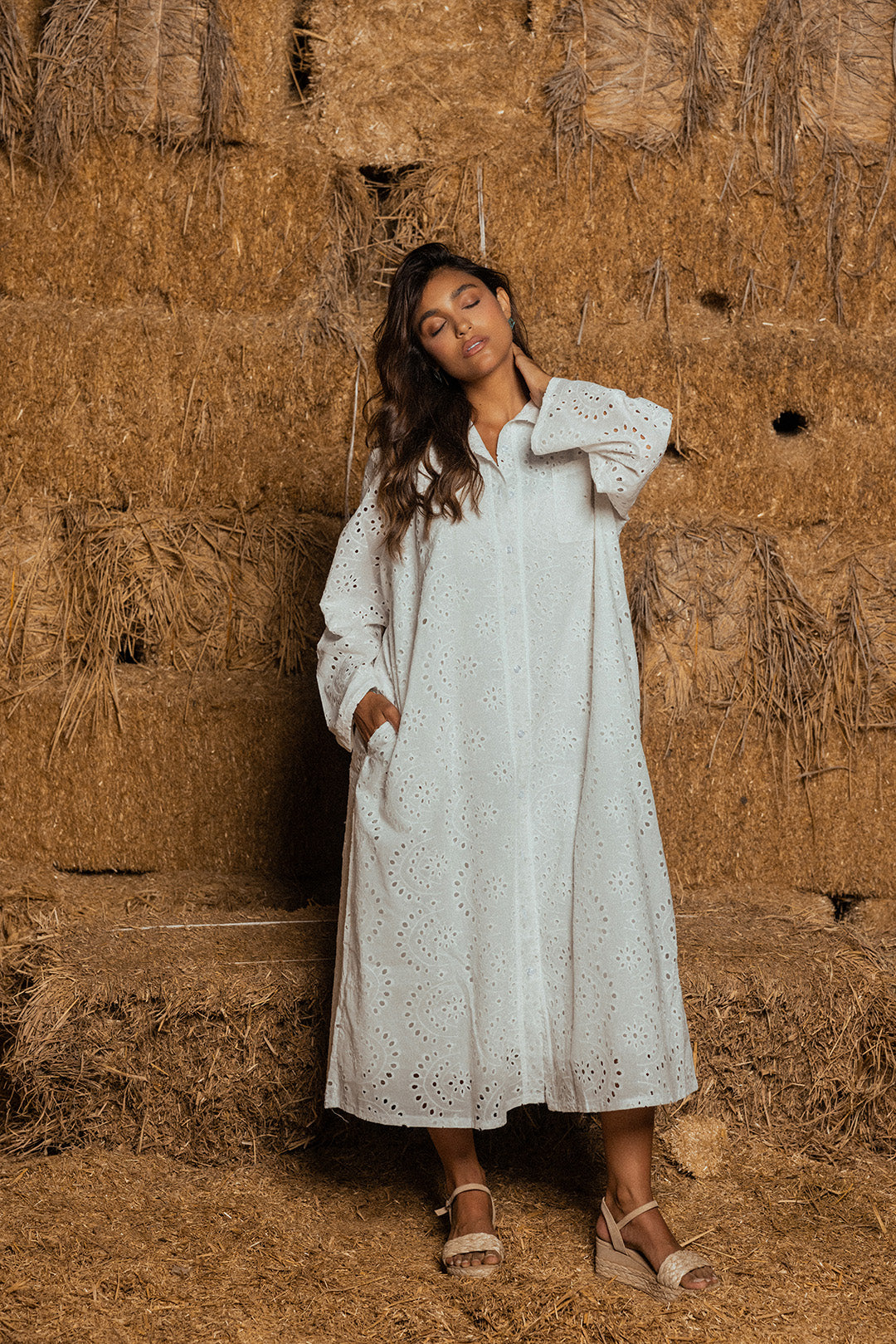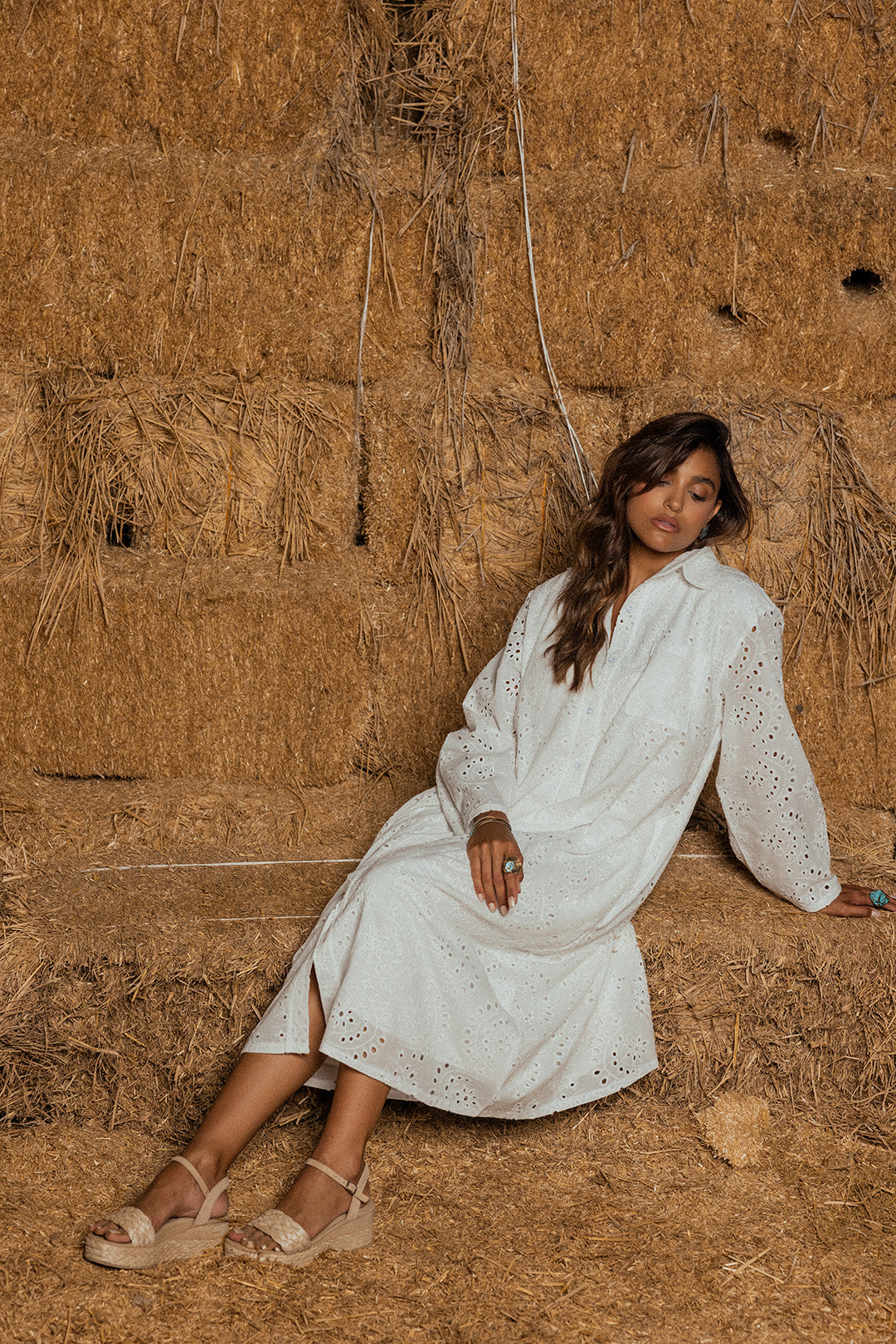 Elevate your spring wardrobe with the Orange blossoms dress, a stunning creation made from luxurious Rukama fabric. This lightweight and comfortable dress is perfect for a refreshing spring day, offering both style and ease.