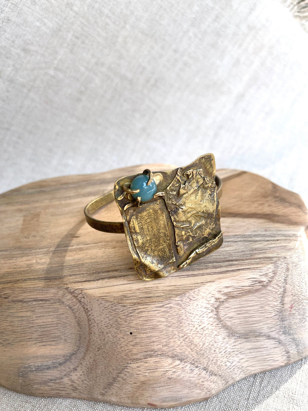 Introducing Aurore, a unique Bangle crafted from vintage brass and adorned with agate stone. Known as a warm metal, the vintage brass balances energies from both the moon and the sun. The agate stone, revered by Babylonians for dispelling evil energy and by Egyptians for its protection against natural disasters, delivers good luck and healing properties. Enhance your style with this protective and healing vintage brass agate necklace today. Buy now and experience the balance and protection of Aurore.